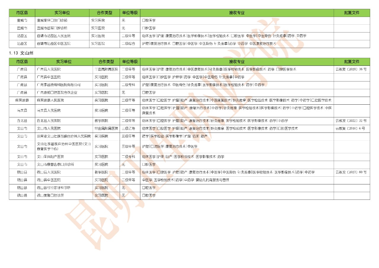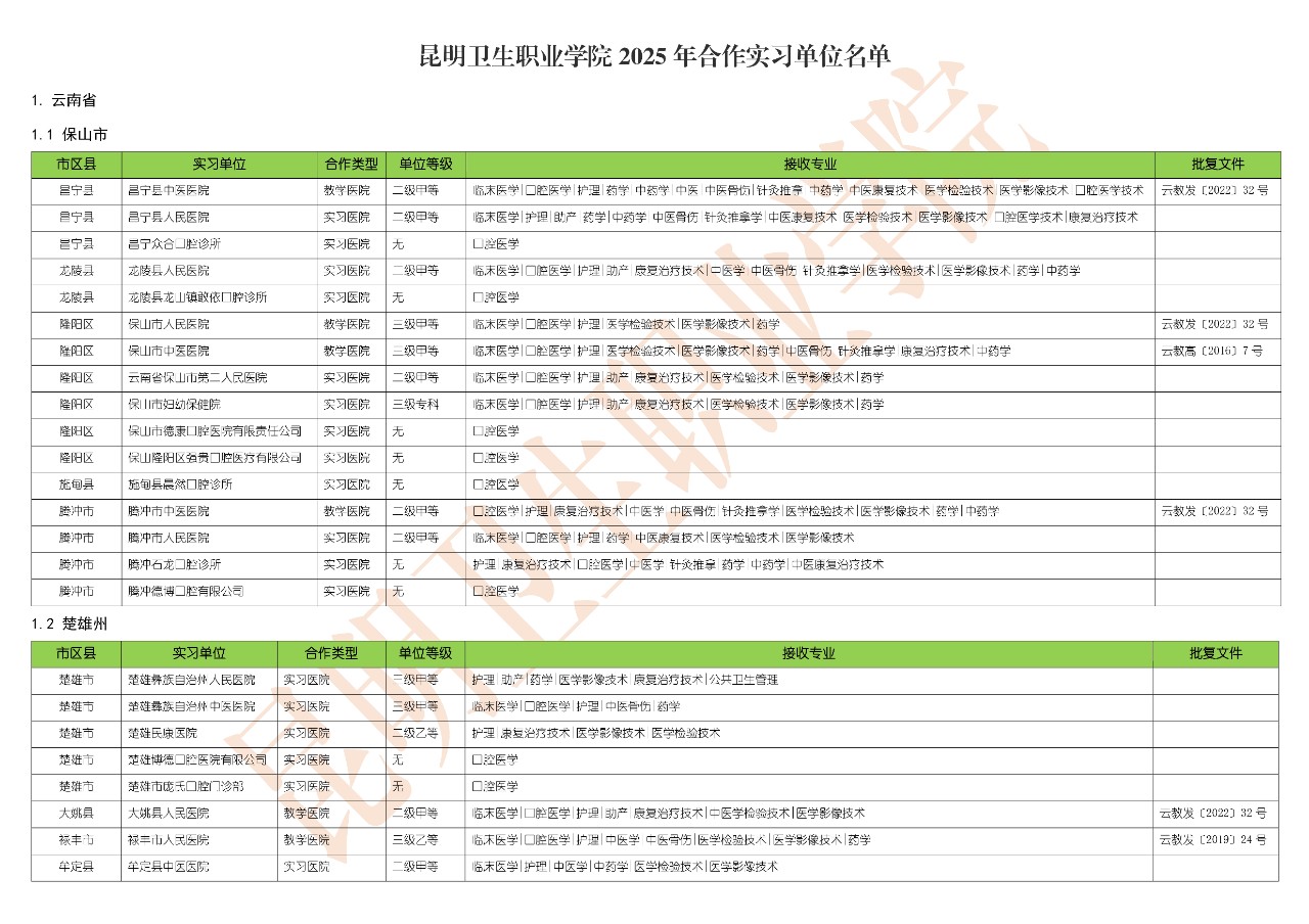 现对外公布校外实习基地的相关信息,公示时间长期有效,鉴于实习基地每年接收实习学生的专业和人数动态变化,实际可选择的实习单位及接收专业和人数,请以“智汇开云”系统中实习单位选择板块所公布的信息为准。如有异议,请直接与临床实践教学管理科反映。
