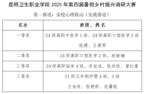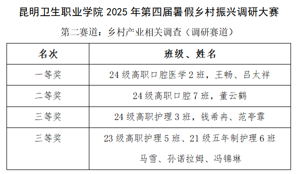 开云官方版网站登录入口大学生工作部成功举办第四届假期乡村振兴调研大赛,本次大赛同期设立“家校心理联动”(实践赛道)和“乡村产业相关调查”(调研赛道)双赛道,共收到来自护理、中医、口腔、临床等多个专业的优秀调研报告,近日获奖名单正式公布。大赛以“家校同心·健康同行”为主题,各组同学利用暑期深入云南省宣威、会泽、晋宁、宜良、元阳等地的农村、医院、产业园区,通过问卷、访谈、实地观察等方式,认真调查,展现了医学生扎根基层、服务社会的专业担当。