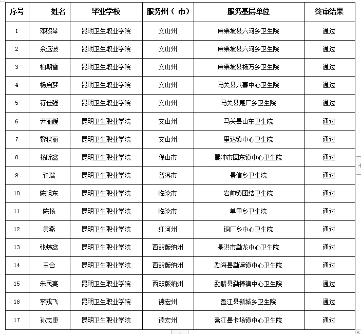 按照《云南省普通高等学校毕业生学费和国家助学贷款代偿办法》规定,对2020年云南省普通高校毕业生基层就业学费和国家助学贷款代偿申请材料通过逐级评审,并经公示后无异议,现将评审情况予以公布: