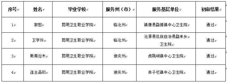 2023年云南省普通高校毕业生到边境县市和迪庆州3个县市基层单位就业学费和国家助学贷款申请对象初审名单汇总表