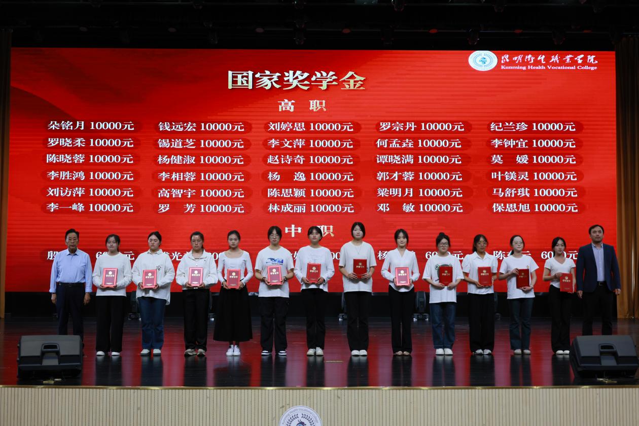 接着,激动人心的颁奖环节开始了。本次大会共表彰了35名国家奖学金获得者(涉及30名高职,5名中职学生),以及18名省政府奖学金获得者(涉及10名高职,8名中职),这些同学凭借优异的成绩、扎实的专业技能以及突出的综合素质,从众多学子中脱颖而出,成为了全院师生的骄傲,他们的脸上洋溢着自豪与喜悦,那是对他们不懈努力的最好回馈。领导中心逐一为获奖同学颁发荣誉证书,他们的每一次握手、每一次鼓励的话语,都传递着学院对优秀人才的深切关怀与殷切期望。