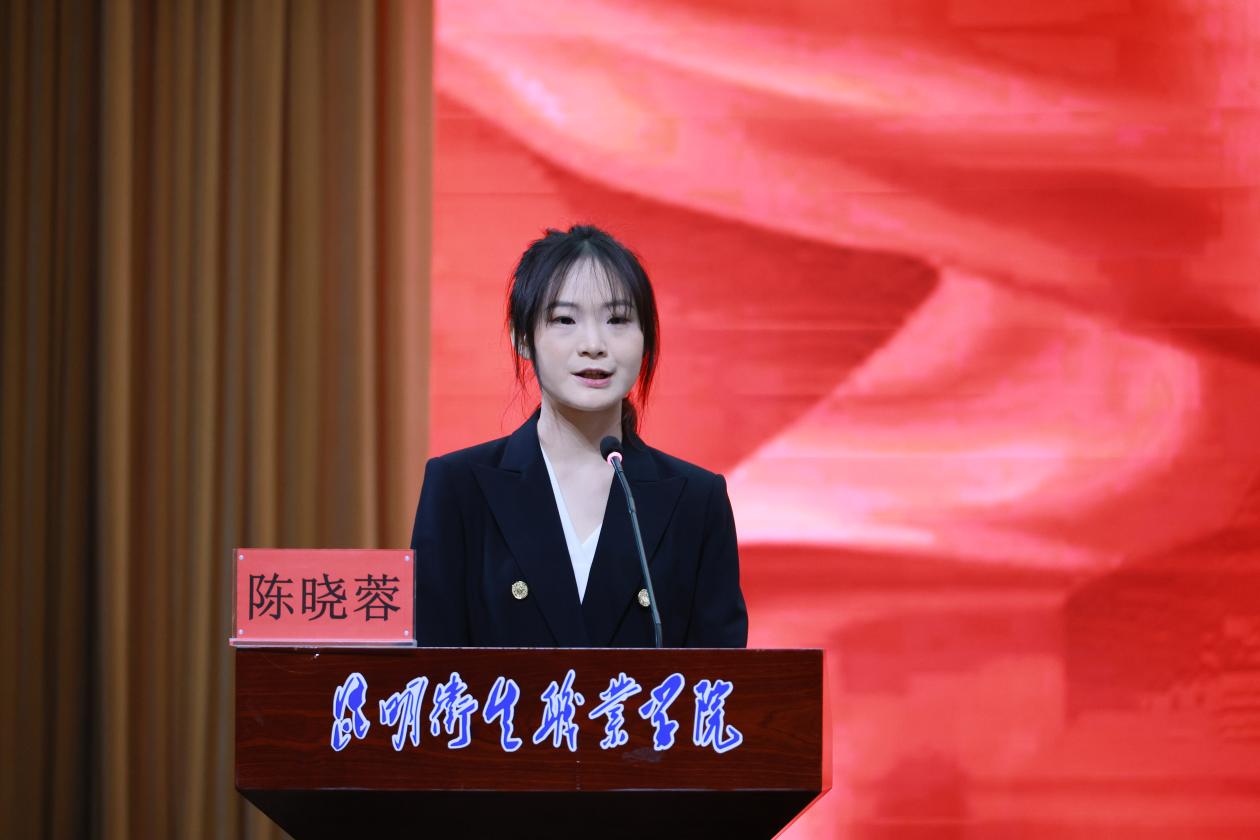 颁奖结束后,优秀学生代表陈晓蓉同学上台发言。她以真挚的情感、朴实的语言,以“感恩”、“奋斗”、责任“为关键词,深情感谢了学校的培养和师长的悉心教导、父母的默默付出和同窗的温暖陪伴;分享了自己的学习心得与成长历程。陈晓蓉同学表示,荣誉是动力,更是责任。她将以此次获奖为契机,继续努力,不断攀登新的学术高峰,为学院争光,为社会贡献自己的力量。她的发言,赢得了在场师生的阵阵掌声与共鸣。