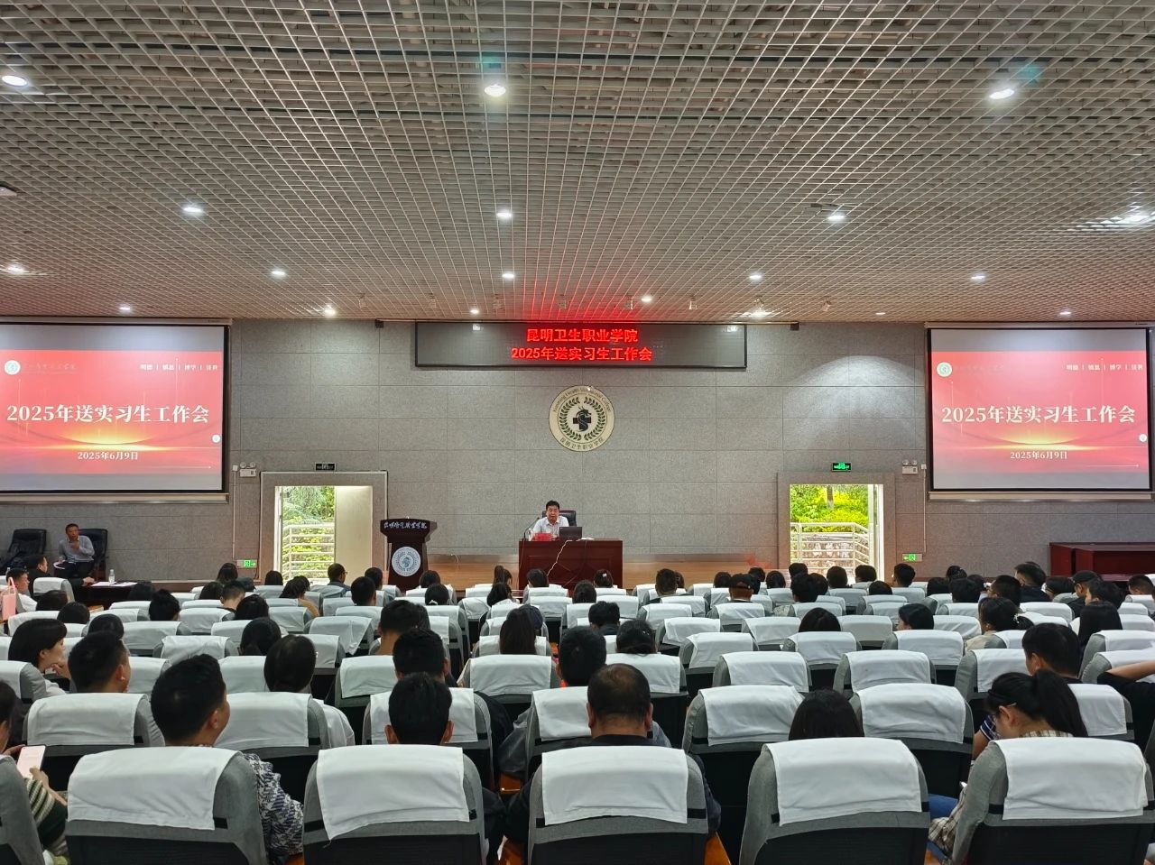 为高质量推进实践教学体系建设,切实保障5970名实习学生顺利完成临床实践关键环节,2025年6月9日,学院召开2025-2026学年送实习生工作专题会议。学院副院长张尤松出席会议并部署工作,300余名带队教师参会。会议由教务处副处长颜慧林主持。