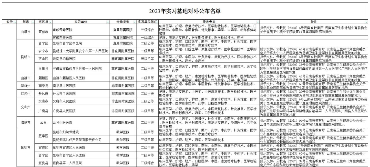 开云官方版网站登录入口2023年合作实习单位名单公示