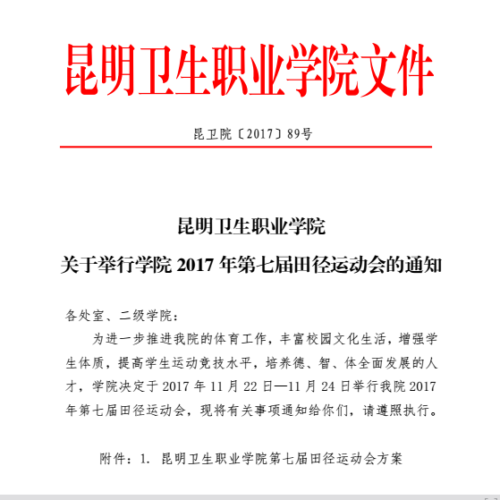 学院2017年第七届田径运动会的通知