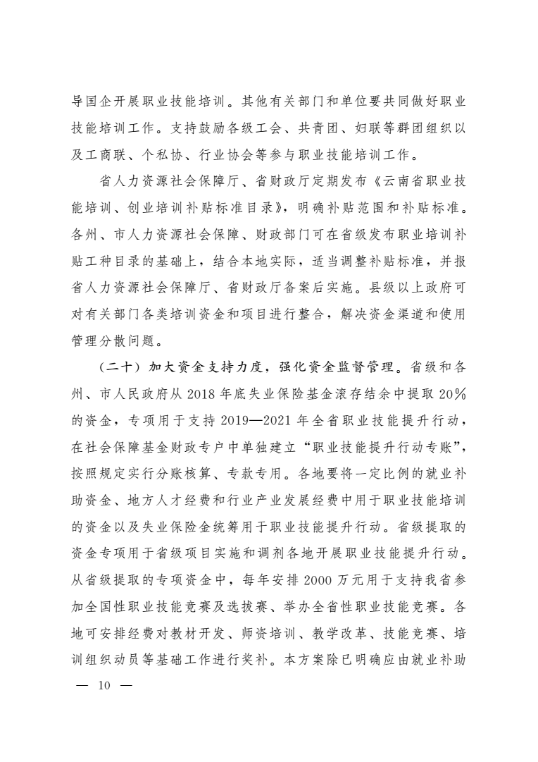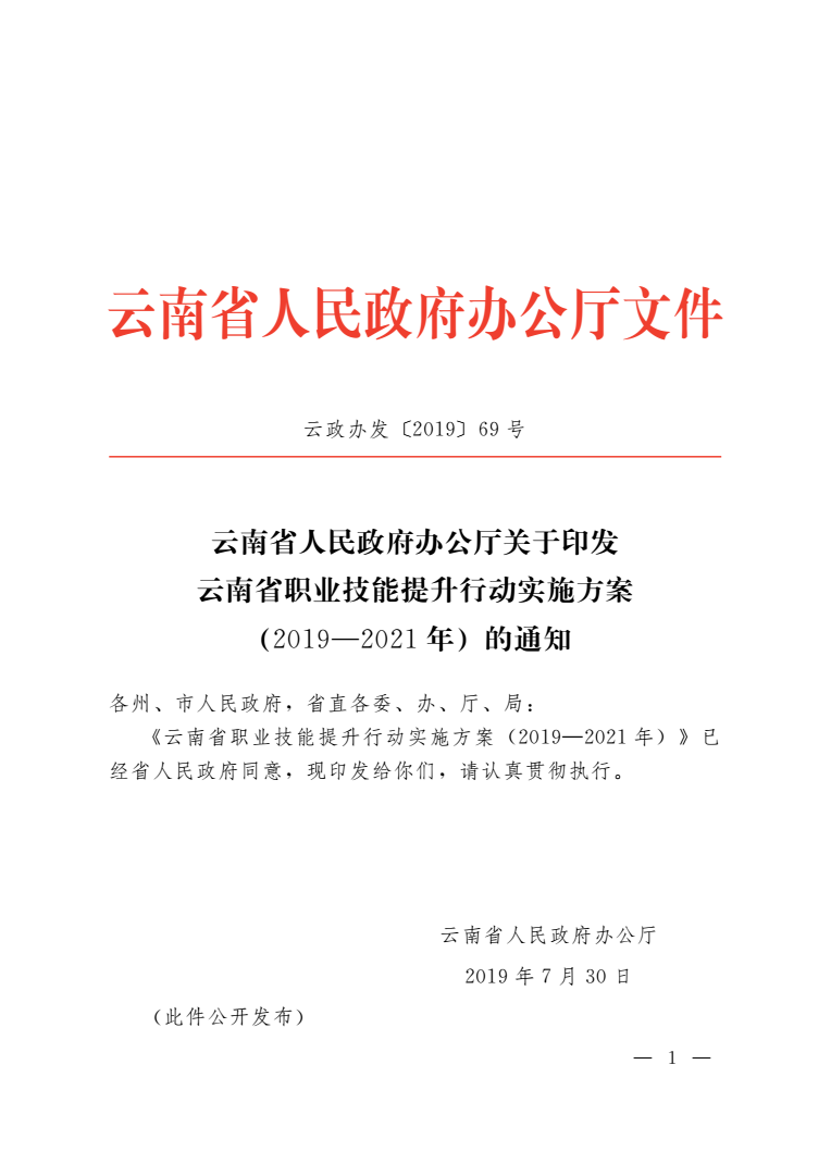 权威发布|云南省人民政府办公厅关于印发云南省职业技能提升行动实施方案(2019—2021年)的通知