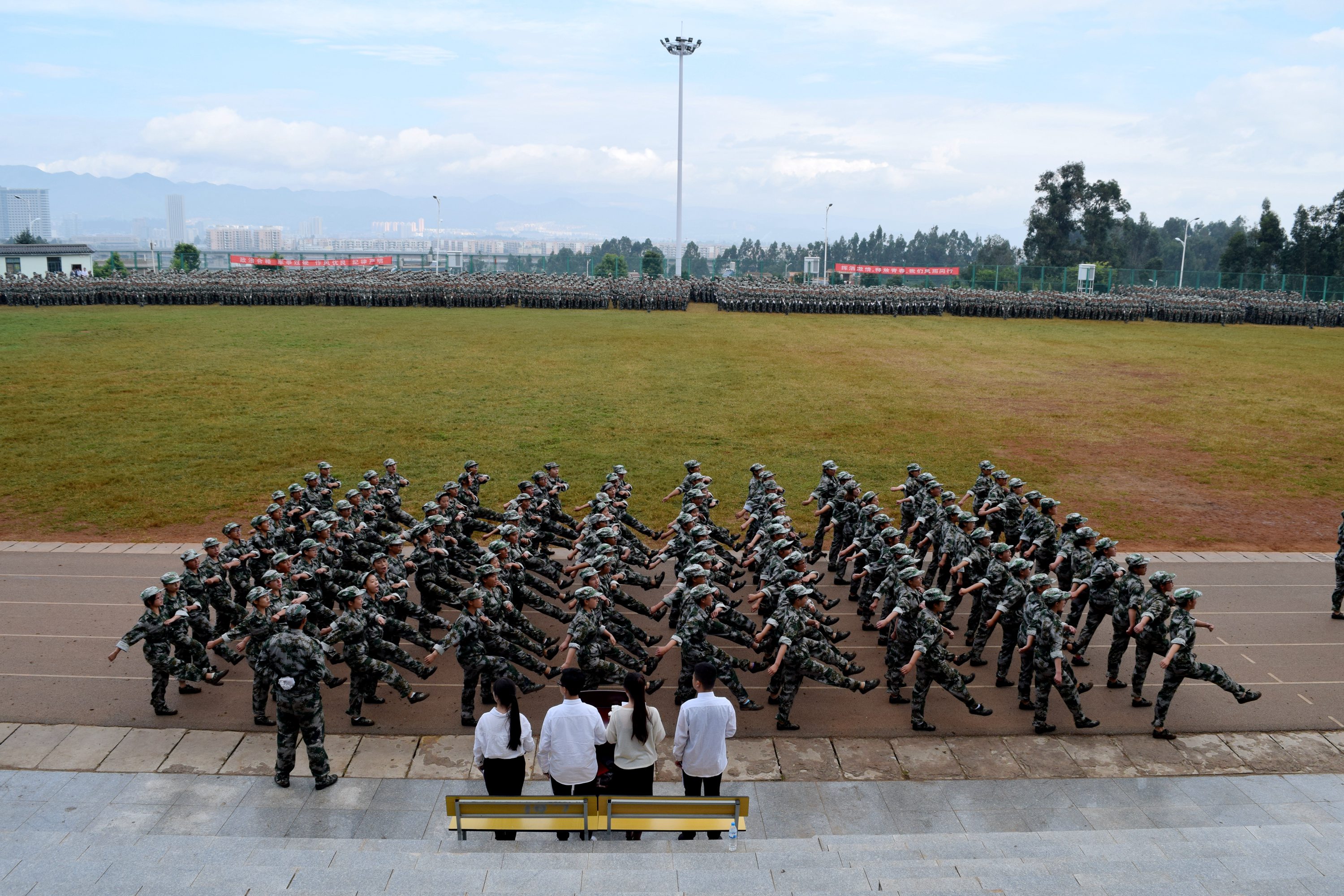 近500名新生身穿迷彩服、手戴白手套,随着音乐声变换出不同的方阵。据了解,台上短短5分钟的表演,是新生们和教官努力训练一周的结果。花样方阵表演赢得了观礼台师生的热烈掌声。学院副院长、武装部部长周平表示,希望通过这样的汇演,增强学生的爱国、爱党、爱校意识,同时也提升学生的团结协作能力。
