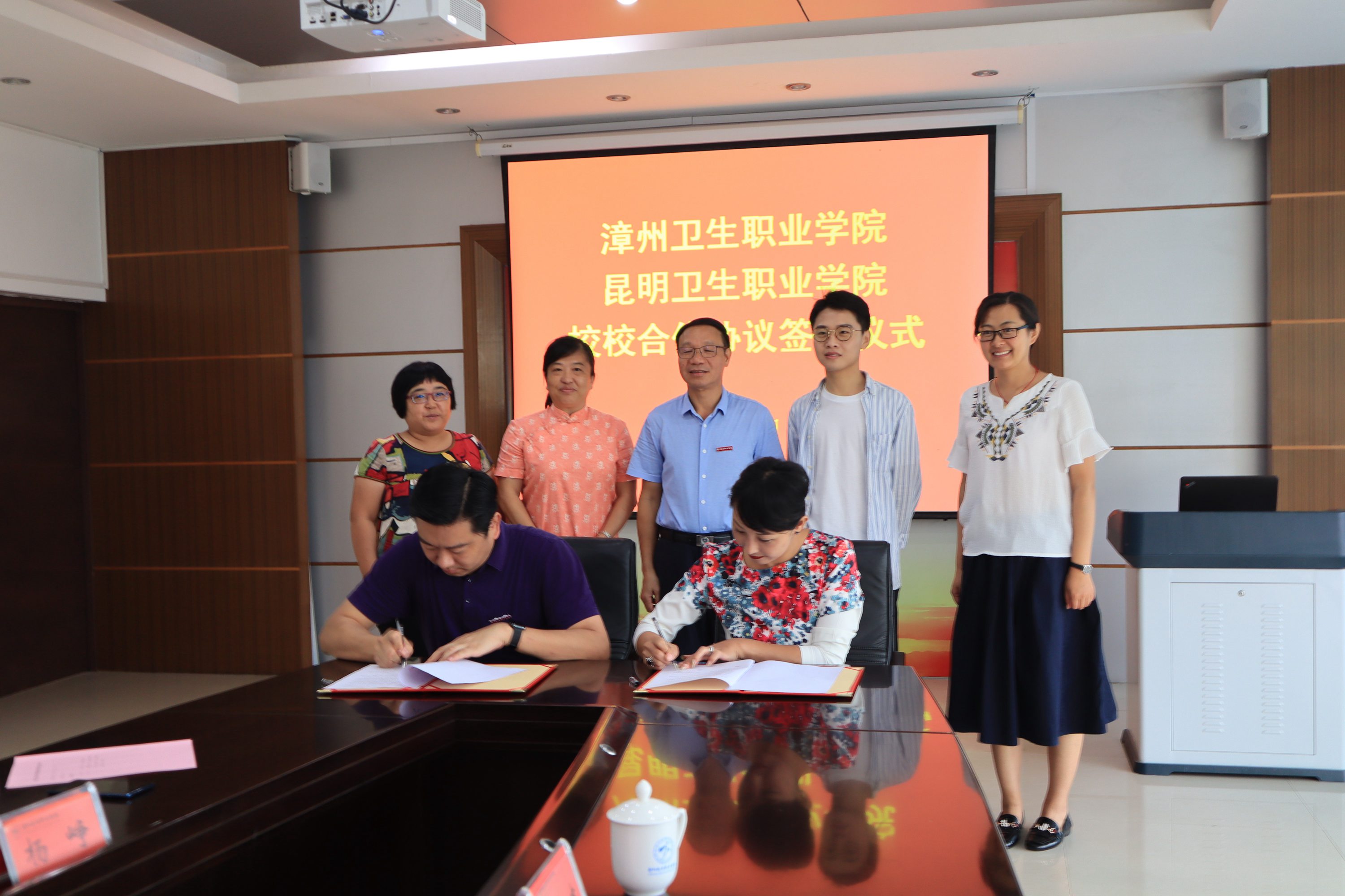 为进一步促进校校间的交流与合作,实现资源共建共享,共同提高人才培养质量,6月18日,我院由副院长龙雨霏带队,教务处处长李玉晶、教务处处长助理徐伟杰一行3人,本着学习、借鉴、交流、加强沟通与增进友谊的态度,到漳州卫生职业学院考察交流,并签订校校合作协议。期间受到院长沈国星、副院长房立平及相关部门负责人的热情接待。