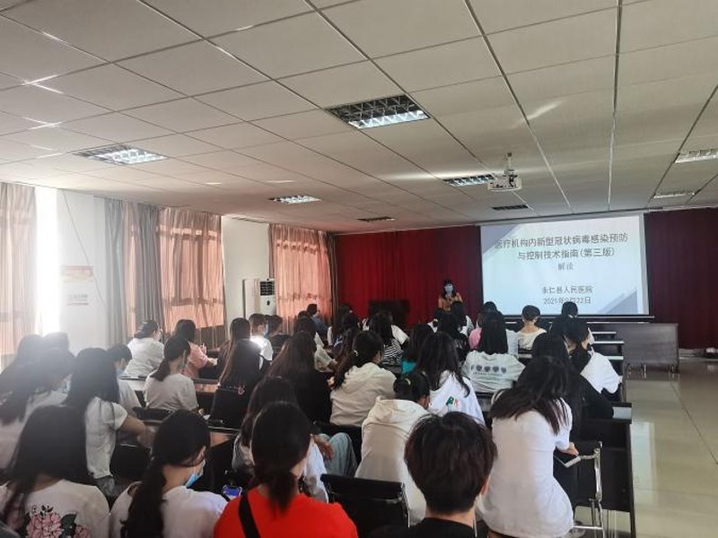 永仁县人民医院全体实习生参加了医院组织的《新型冠状病毒的预防与控制技术指南》讲座。通过讲座更加详细地认识到了新型冠状病毒。要求实习生要认真运用“七步洗手法”、会穿防护服、上班期间戴好口罩等等问题。