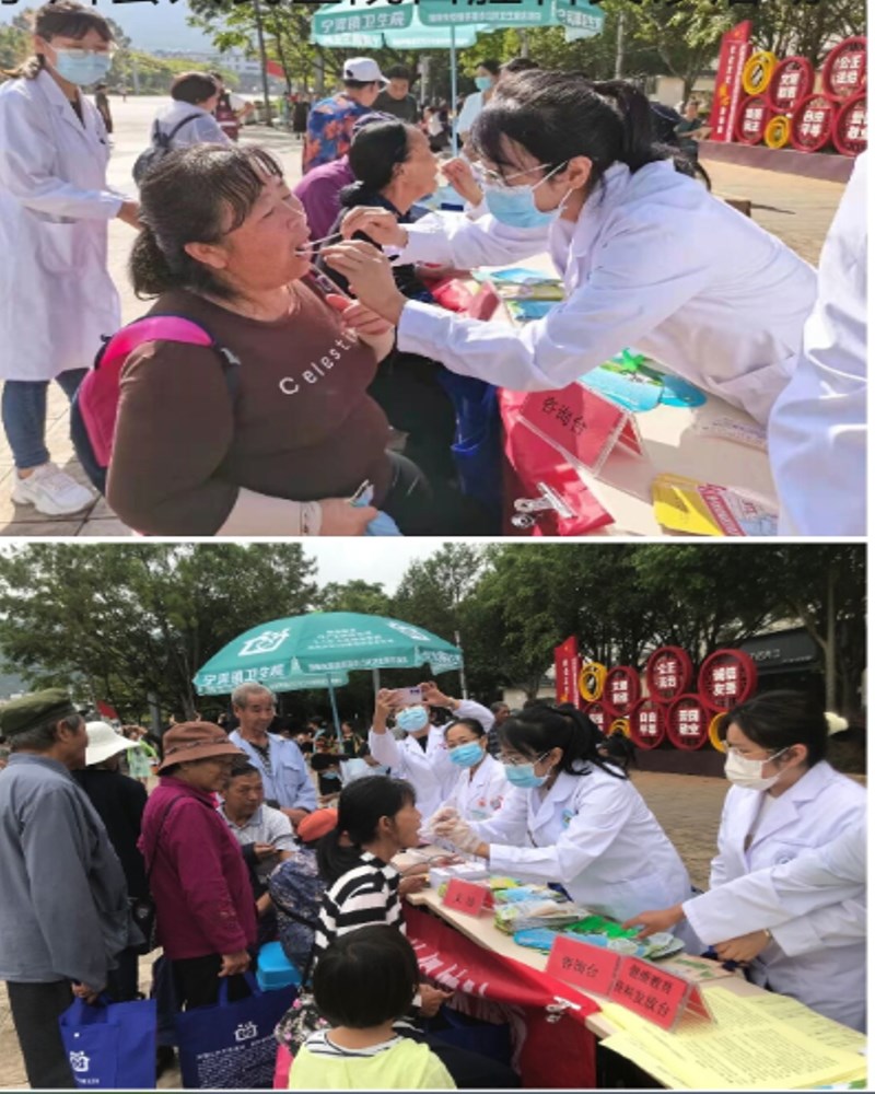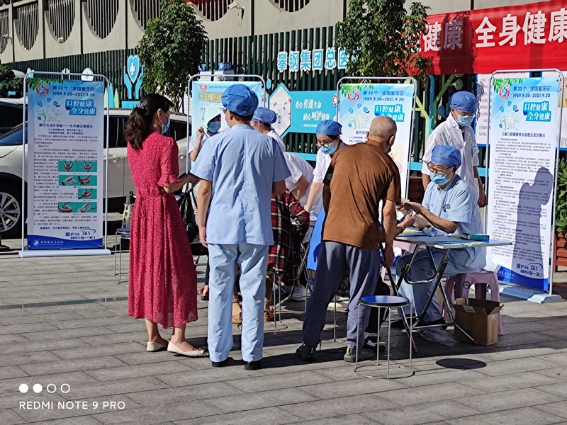 2021年9月20日全国爱牙日这天,四川攀钢集团总医院口腔科实习生,在医院门口准备了一系列例如牙膏,牙刷,牙线,义齿清洁片等赠送的小礼品,对进出的患者及家属宣讲口腔疾病预防,义齿清洁等相关口腔健康小常识,并且为有需求的患者做简单的口腔检查。