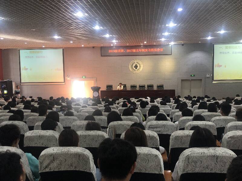 为保障2021年实习生到岗后能尽快适应毕业临床实习,我院于6月29日、7月5日,分别在两校区召开了实习组长培训会议。我院张尤松副院长,实习管理处颜慧林处长,实习管理科纳适科长、郭嘉华副科长出席会议、各班级选派的实习组长参加了培训会。