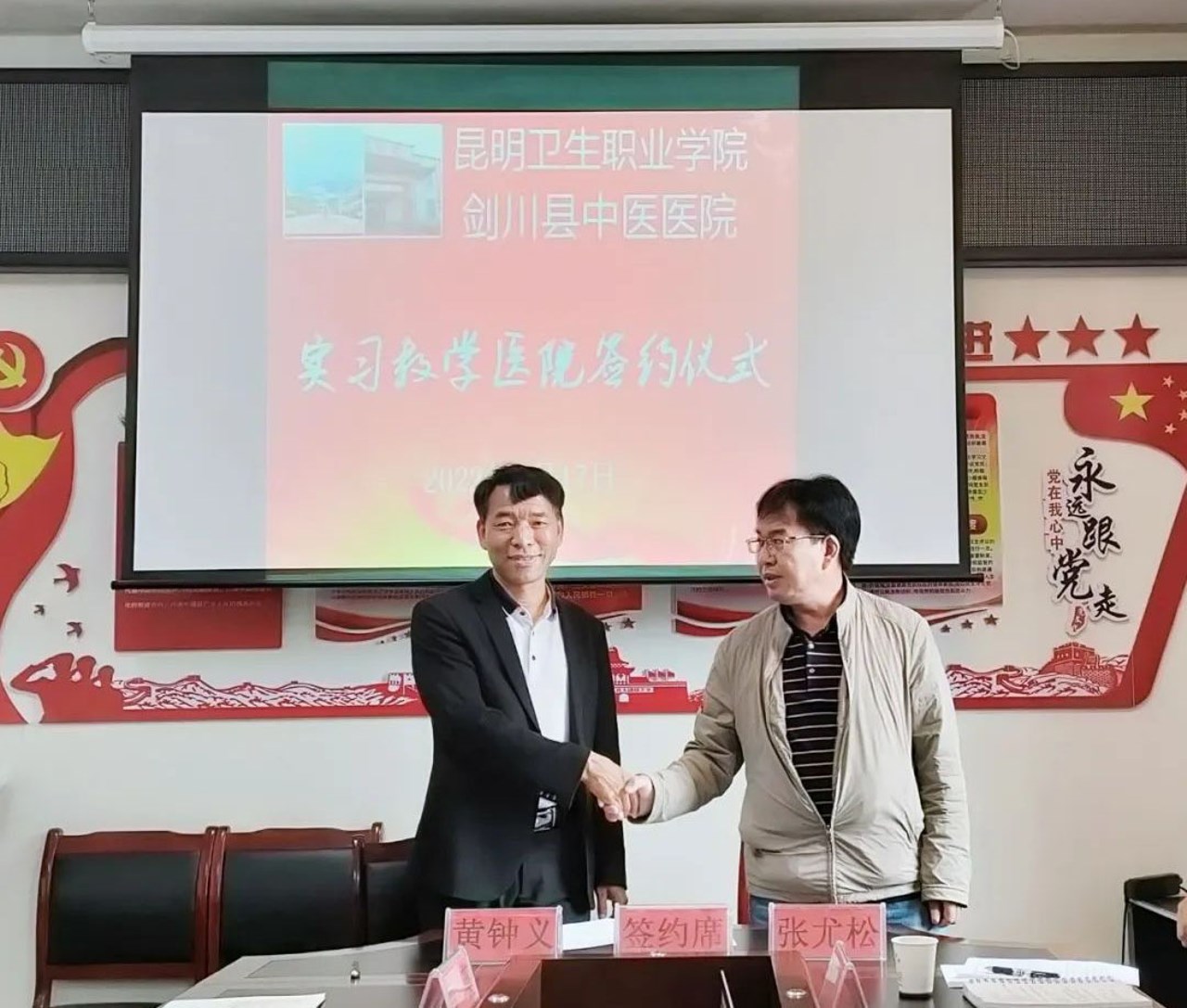 最后,院校双方就建立学生实习实践基地达成意向。张尤松副院长与剑川县中医医院黄钟义院长签署了《建立实习医院关系协议书》。此次签约将有效整合双方资源优势,共谱院校合作新篇章。