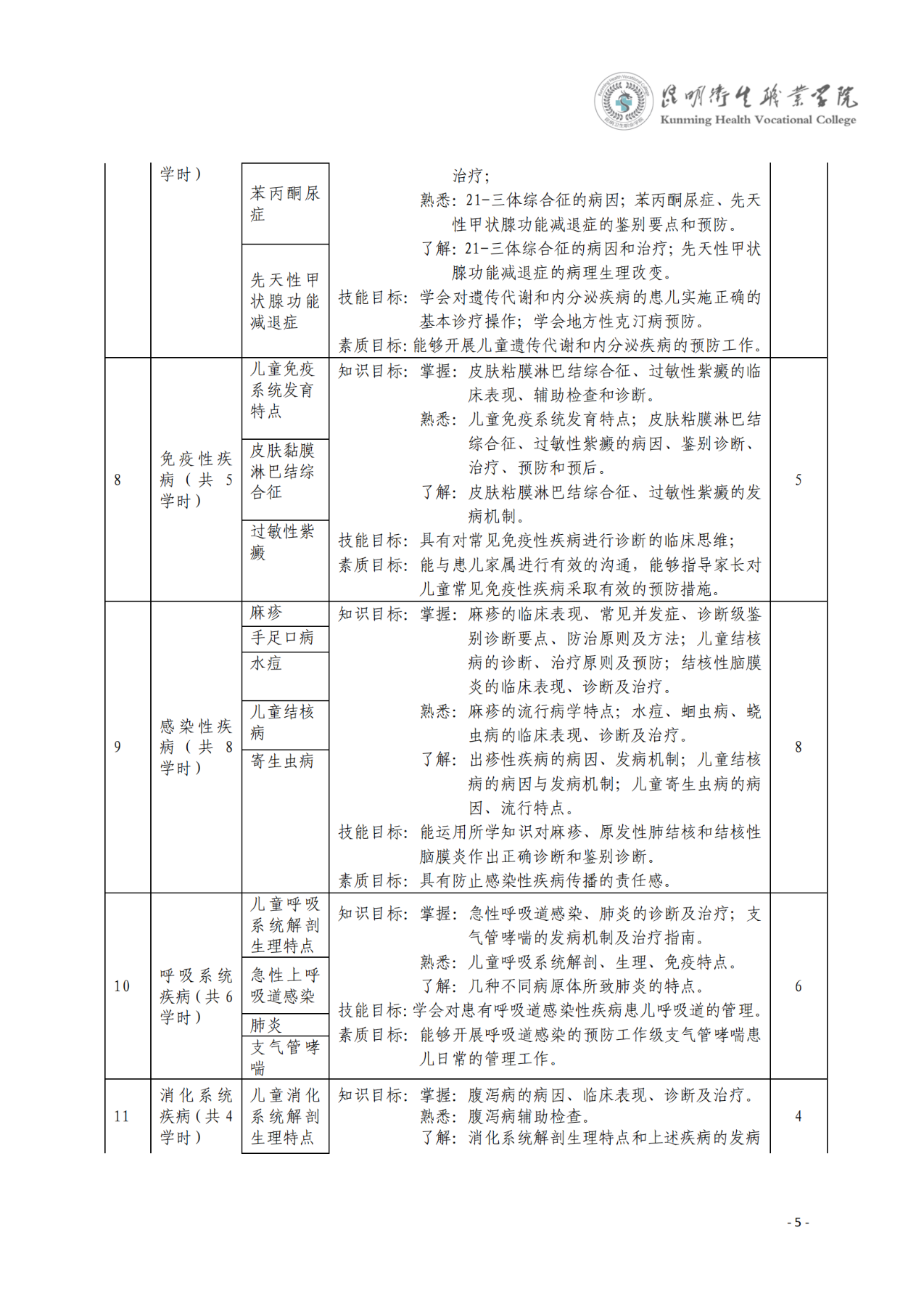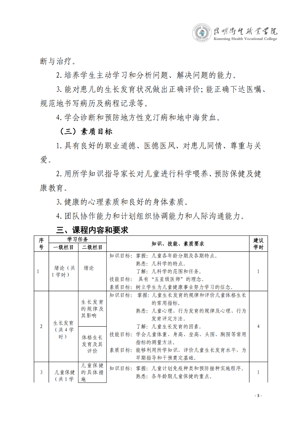 《儿科学》课程标准