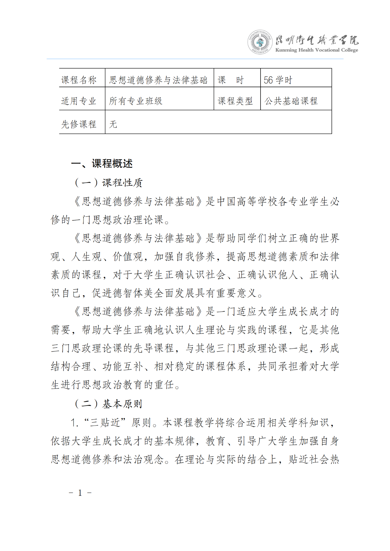 《思想道德修养与法律基础》课程标准