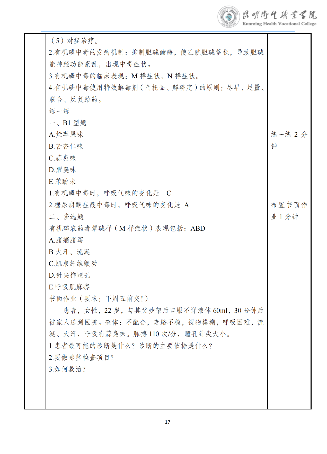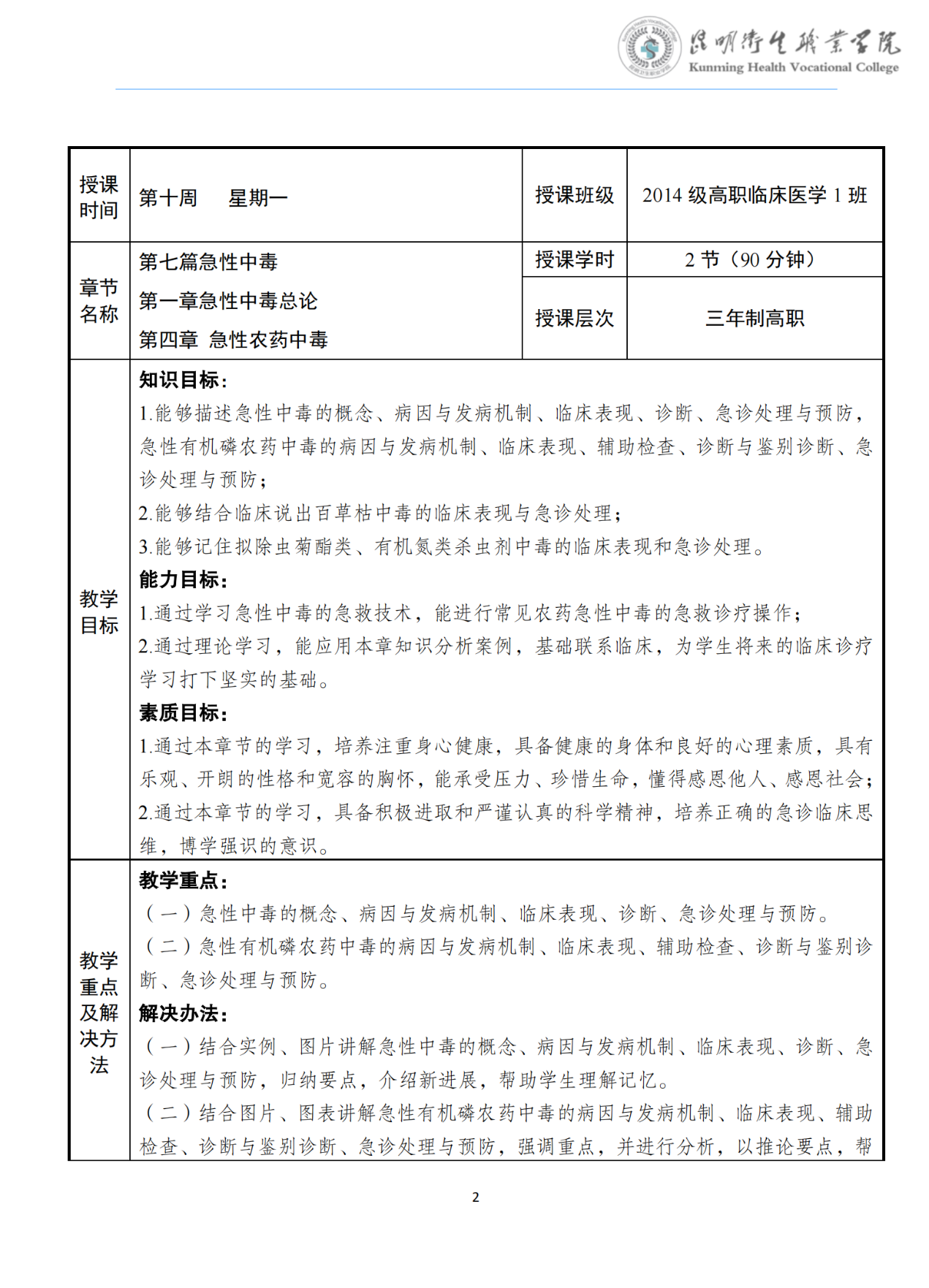 《急性中毒》教案(急诊学)