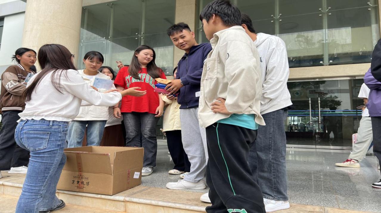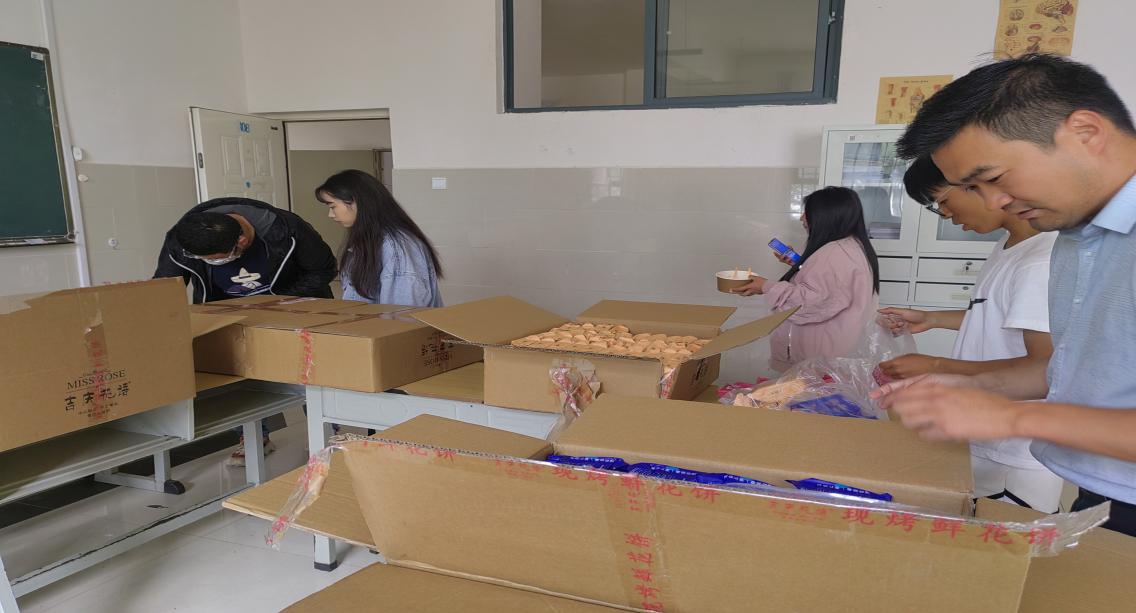 老师们为同学们发放月饼。月饼虽小,情意却浓,承载着学院浓厚的关心与爱护,寄托着对莘莘学子的美好祝愿,希望他们学业有成,未来可期!