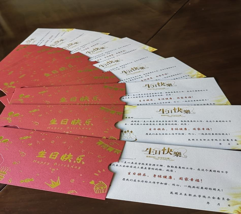 “作为全校第一位收到生日贺卡的老师,我既兴奋,又感动。衷心地感谢学院党政领导、学院工会组织对教职工的真切关怀,给了我们家的温馨。”教师彭莉激动地说。
