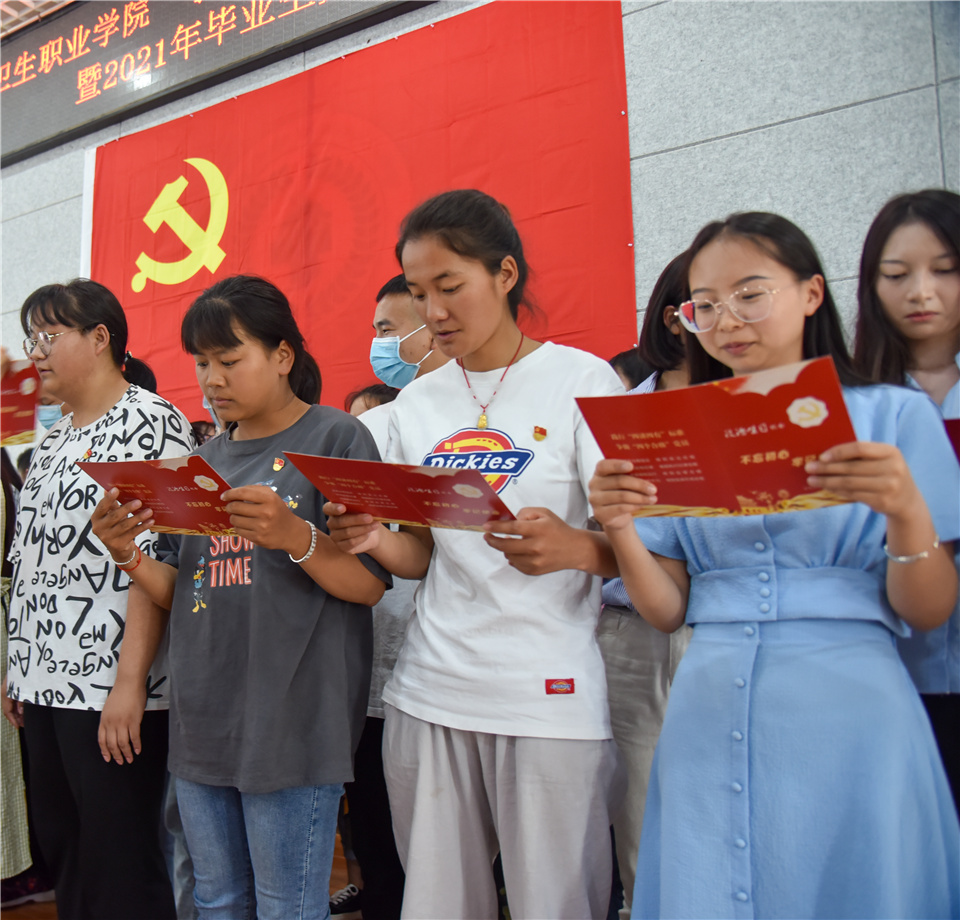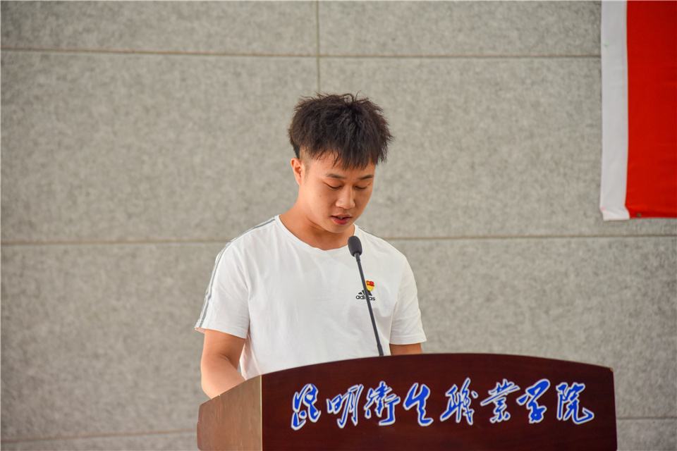 随后,2018级高职口腔6班贾云飞代表毕业生党员发言,在感恩三年来的学院生活的同时,他也代表毕业生党员激励新党员以自身的实际行动积极实践誓词,强化党员意识,增强党性观念,并祝福学院未来发展越来越好。