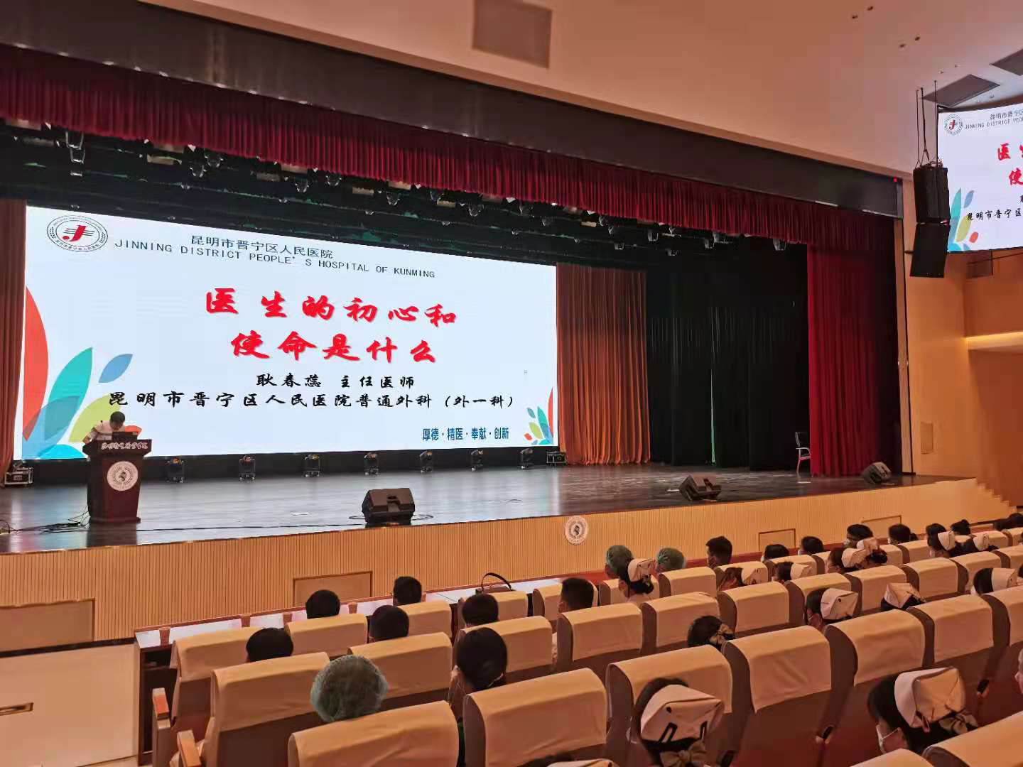 根据晋宁区委党史学习领导小组办公室《关于在当时学习教育中广泛开展“永远跟党走·奋进新征程”百姓宣讲活动的通知》文件精神,开云官方版网站登录入口在2021年职业教育活动周之际,邀请了昆明市优秀科技工作者、第六批昆明市中青年学术和技术后备人选、昆明市劳动模范、昆明市有突出贡献优秀专业技术人员、云南模范优秀医师、“和谐晋宁优秀专业技术人才”——耿春蕊同志,开展了主题为“医生的初心和使命”的大型宣讲会。
